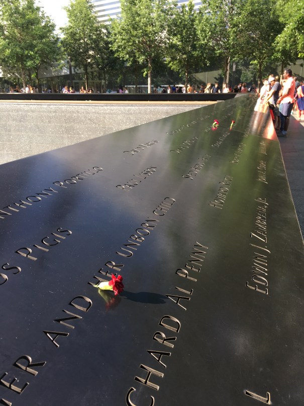 They were very beautiful and very emotional to see. Each one of the names lost that fateful day inscribed into the marble ledge surrounding the 30 foot waterfalls.